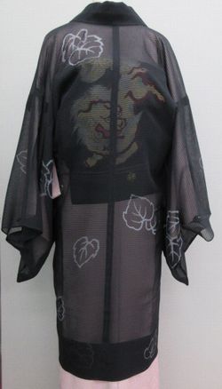 単衣きもの衿コート つた葉 絵羽羽織 洋更紗